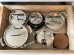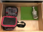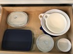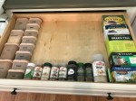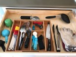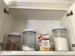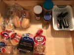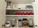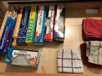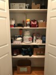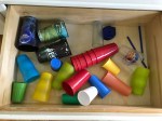 I purged plastic cups that BOBBY! (surprisingly) said we should get rid of. And I also let go of a large electric mixer and oven mitts that belonged to Sarah. She was willing to part with them after a couple of years of them sitting unused. Sarah is the main baker in our family and she said that she prefers the hand mixer.