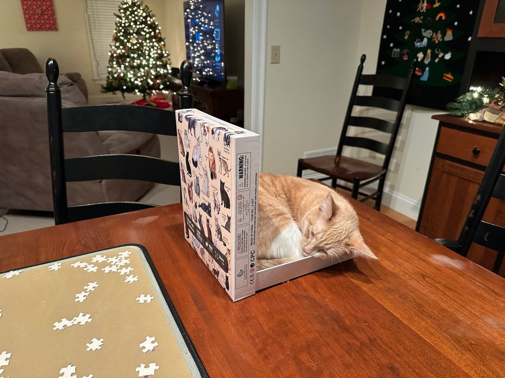 The Christmas season came and went. I did some holiday baking and celebrated Christmas with my mom at my sister‘s house. Then we hosted Christmas Eve with my dad and other extended family. We also attended midnight Mass. On Christmas Day, Matthew and his girlfriend came over for opening presents and our traditional Santa pancakes and bacon. And then on the 26th of December we hosted a dinner with the members of Bobby’s family that could make it. Some of them were sick this year. We had a quiet New Year’s Eve game night.