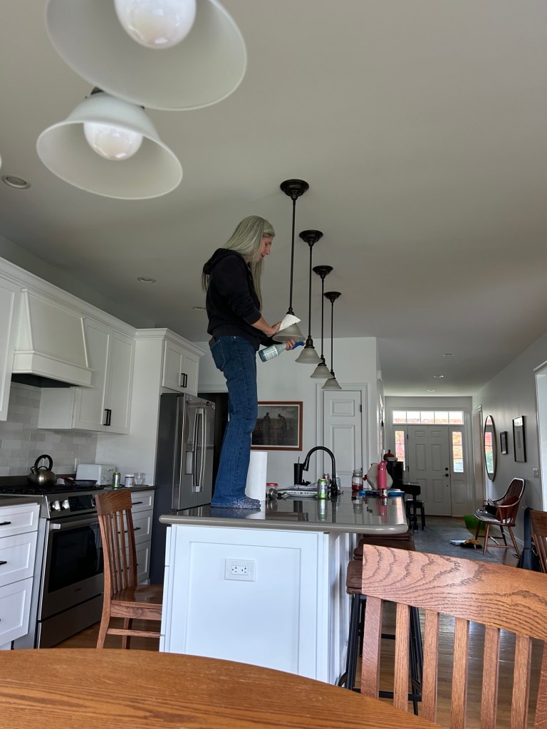 - I had a plumber come in to replace a toilet and electricians fixed a bunch of things that were broken, hung up 2 new light fixtures, replaced outlets and switch plates in the last of the rooms downstairs that hadn’t been changed.