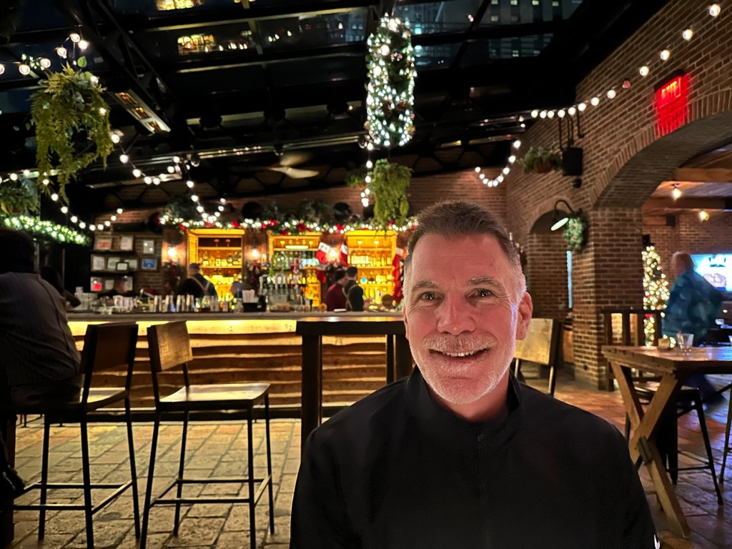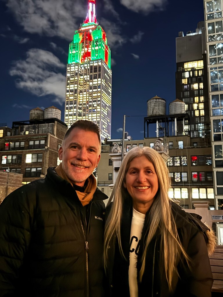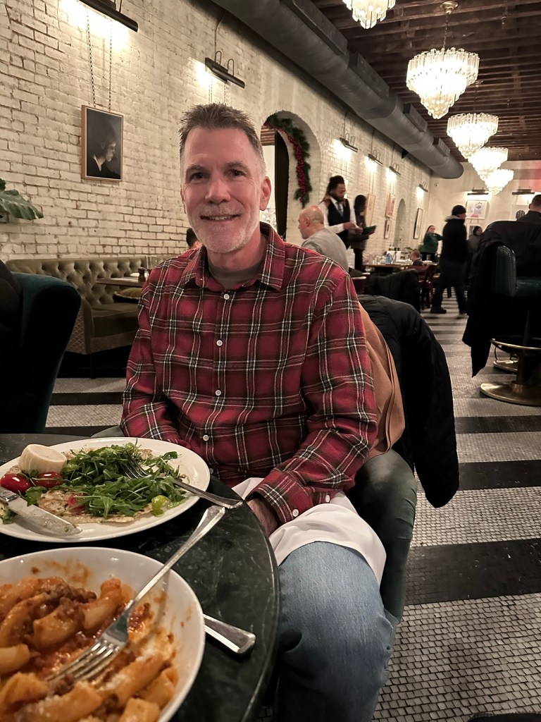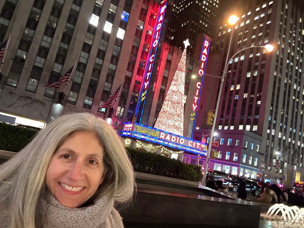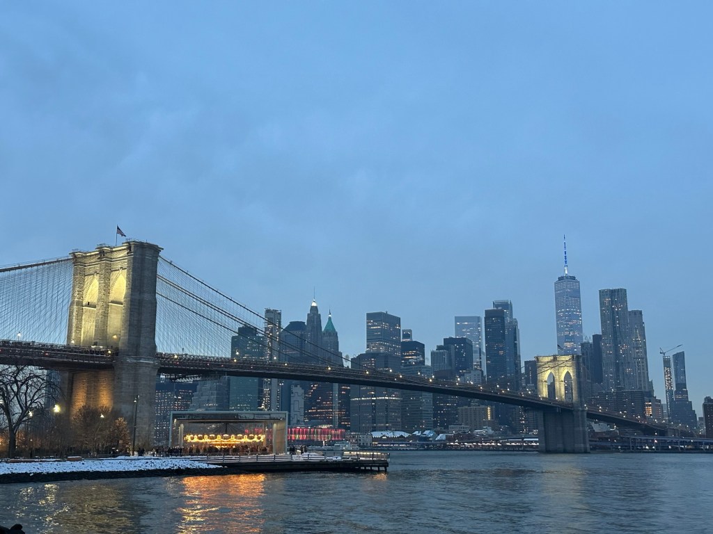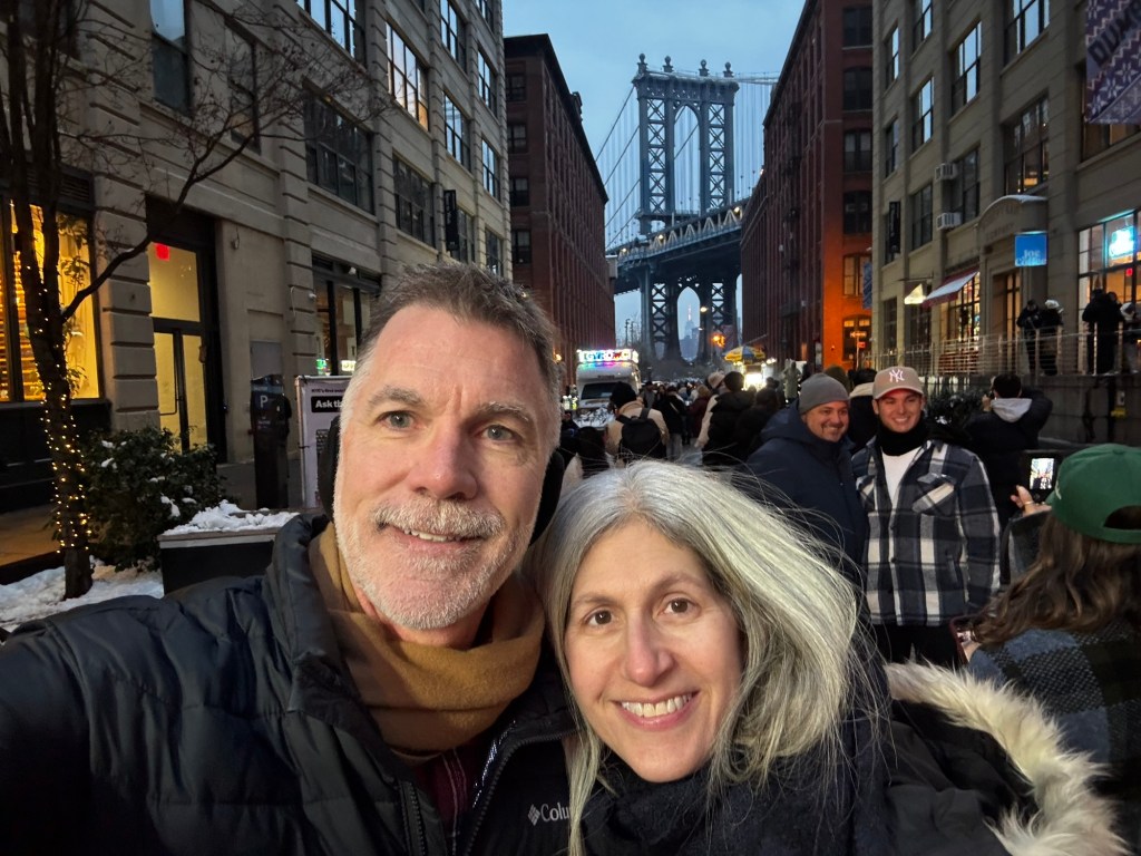 - During Bobby’s Christmas vacation, he wanted to go to New York City alone with me. It was like a three day date and very relaxing for both of us. We went to Brooklyn the first night to DUMBO and an Italian restaurant near a place with good views of the river and skyline. We watched a movie called Champagne Problems that my Dad recommended. It was a Netflix Hallmark type movie. I loved being in the cozy apartment at night with the skinny Christmas tree. The second night we watched It’s a Wonderful Life after another nice dinner, followed by a Grease parody play. I would have rather seen a Broadway play, but there was really nothing available for a decent price. We saw some beautiful Christmas decorations and got our steps in walking around the city. On the last day, I spent a lot of time reading and resting.
