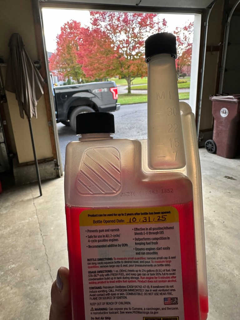- I spent an inordinate amount of time trying to replace old gasoline by way of funneling it into our truck. So what if I bought two different funnels, (the first didn’t work out) and then I found the original one in the basement a few days later, and I had to prop my arms up (in the freezing cold) on our trashcan to be able to pour the gasoline in. I got the job done.