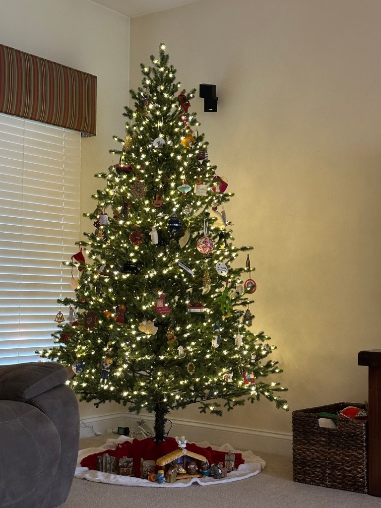 - One night in November, Bobby and I went out on a date in Amherst and we came home with a new Christmas tree from the Hadley Home Depot. I think it’s gonna save me a lot of time in packing away the decorations. It’s pre-lit and works almost like an umbrella. I think it’ll be much more fun to take down, than an hour of circling around the tree to remove the lights, and then removing and carefully packing every layer of branches.