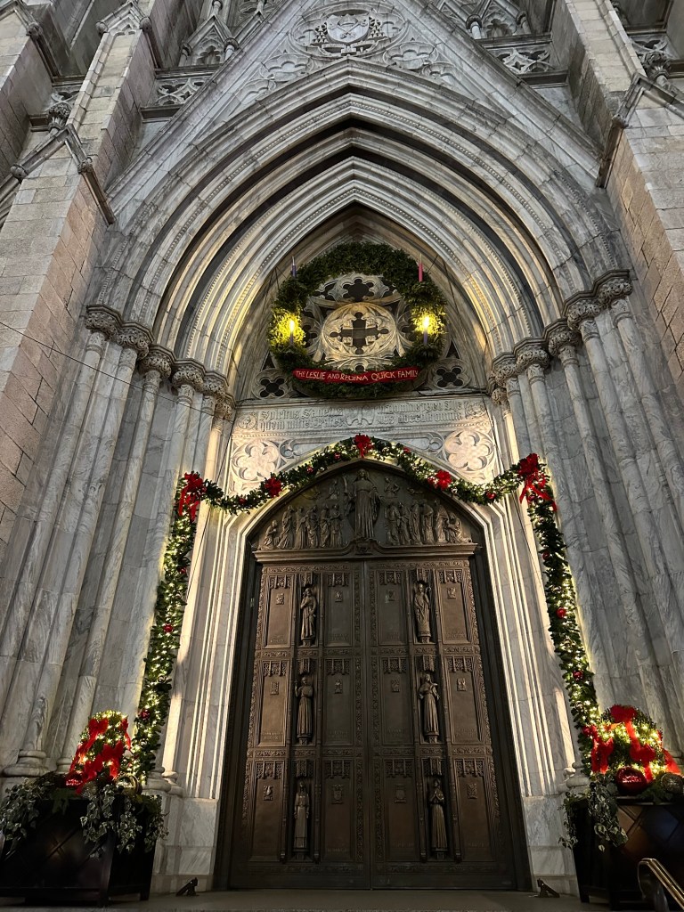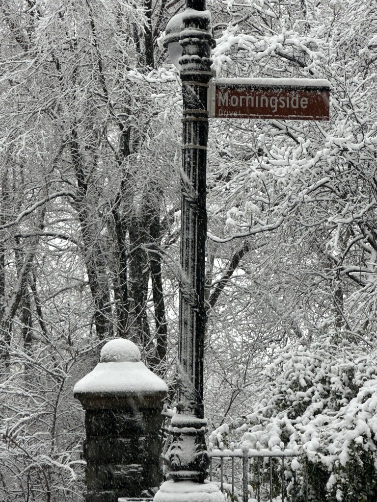 - Bobby and I spent a weekend in New York City with my sister and her boys and one of their girlfriends. We visited Rockefeller Center and Fifth Avenue, looking at decorations, had some nice meals out at restaurants, and waited in a long line to go in FAO Schwartz. We tried to look around the Winter Village at Bryant Park, but it was too crazy crowded there. On Sunday we woke up to snow on the ground. Bobby and I walked to Mass and took pictures of the winter wonderland on Morningside Drive on the way home.