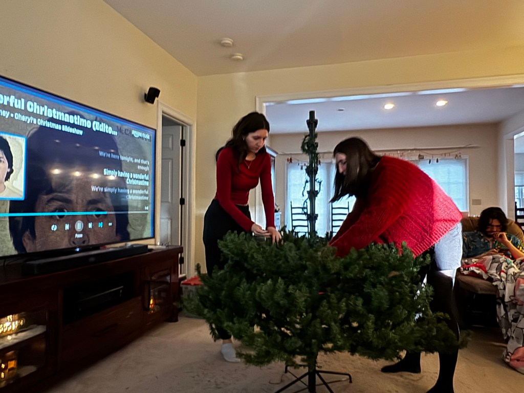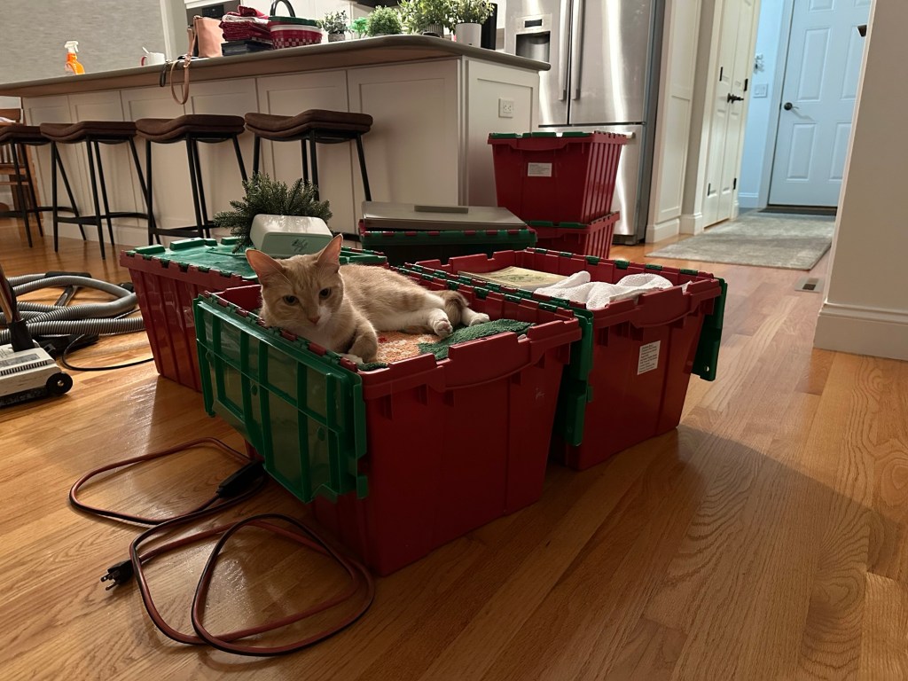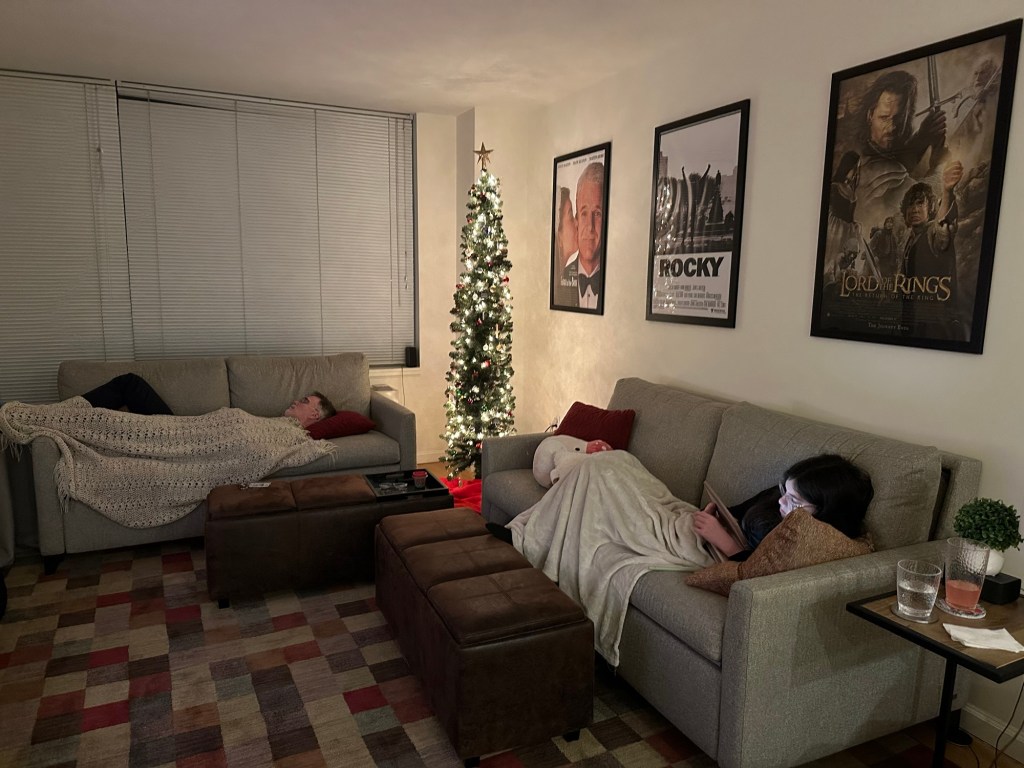 I started a huge project. I made a slideshow of pictures of my Christmases from 1969 until 2024. I did it methodically, and it was very time-consuming. I still haven’t created the DVD yet, but after Christmas we did watch all four parts by connecting a laptop to the TV. A true family movie night.