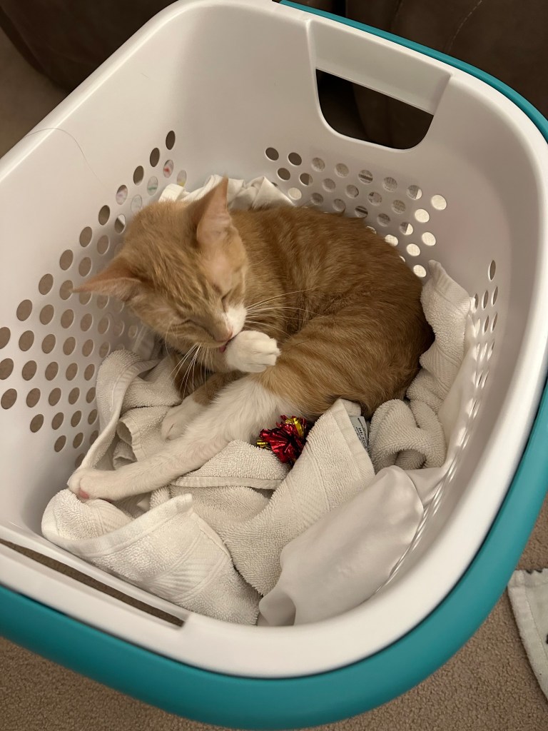 It’s Day 9. I’m trying a new method of decluttering. Each day, I set the timer on my phone for 20 minutes and work until the timer goes off. So far, I’ve gone through my bathroom, my nightstand, my dresser and bedroom closet, the living room, the dining room, the pantry, two kitchen closets, the kitchen cabinets and drawers, and part of the mudroom. I also cleared out stuff my daughters decluttered from their rooms and left in the upstairs hallway. This method seems to be going well so far, but I haven’t gotten to any of the difficult areas yet. If I feel like it, I may do more than 20 minutes. That doesn’t usually happen on the weekdays.