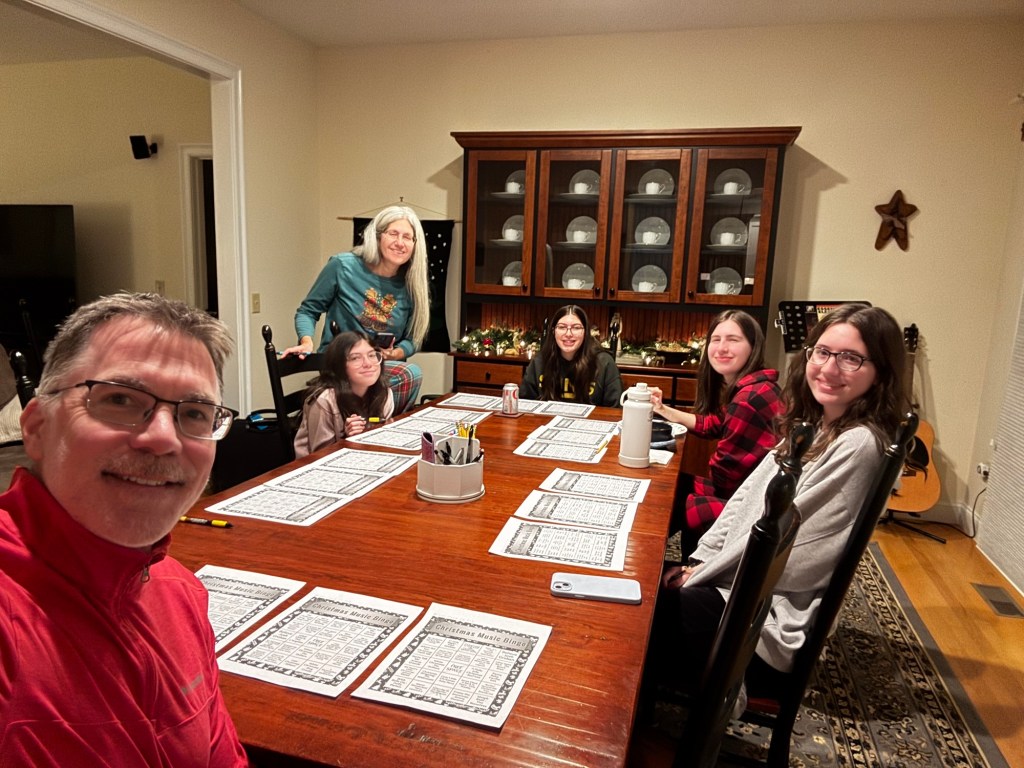 I created a Christmas musical bingo game to play on Christmas Eve and we tested it out.