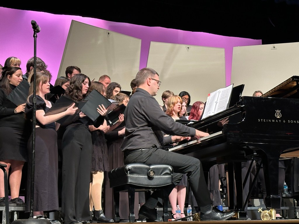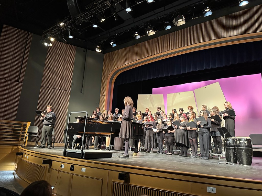 Sarah and Rachel sang in a choral concert at the college they both attend.