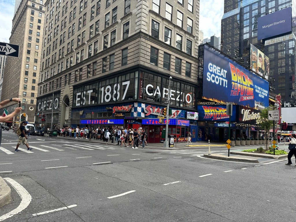 I’m writing from New York City. It’s quiet here this morning, so I thought I would take some time to write. Bobby is at work, and Rachel, Hannah, and four of her friends are in the other room. I am sure that some of them are still sleeping because I don’t hear any talking. We arrived yesterday. Hannah and her friends stayed in the apartment with Bobby, who was working remotely, and I met Rachel and three of her friends and their moms for lunch and a matinee. Mamma Mia!